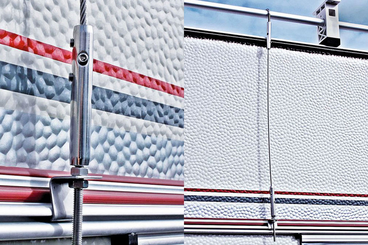 - Schrauben, Spannschlösser und Kleinteile bestehen aus Edelstahl oder Aluminium