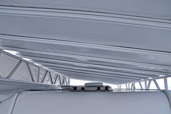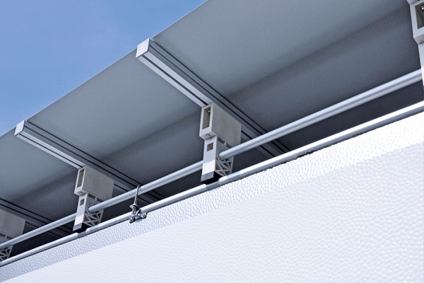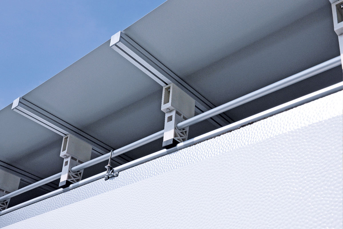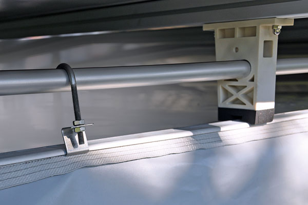 - Die Dachplane ist im Abstand von 50-60 cm in einen Aluträger eingekedert