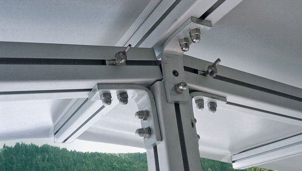 Mit einem optional erhältlichen Befestigungssystem, können Sie das Dach ohne Schrauben befestigen.